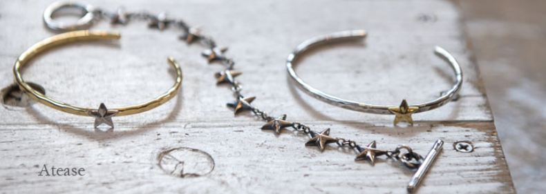 Atease 成立於2002年,主打“RELAX”。以SV925 純銀為中心,將黃銅、木材、鐵、天然石、皮革等各種材料混合而成的配飾。品牌名稱“Atease”來源於
